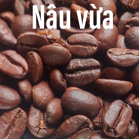 Mức thứ hai là nâu vừa: hạt đã qua giai đoạn first crack và được phát triển thêm để lấy những vị mà người rang mong muốn như : Hương ( Aroma), Ngọt ( Sweetness ) body.